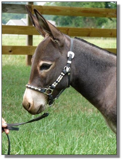 Kathy's ability to make Moxie a fine little show donkey! Stay tuned for progress reports!