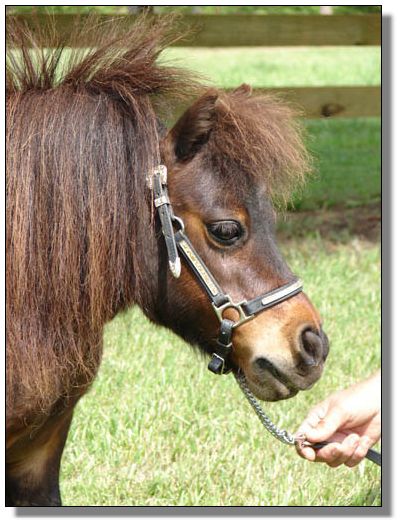 Feather is a miniature dwarf mare measuring 24" who thinks she is 10' tall! We love our little Feather who has the run of the farm.