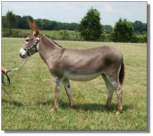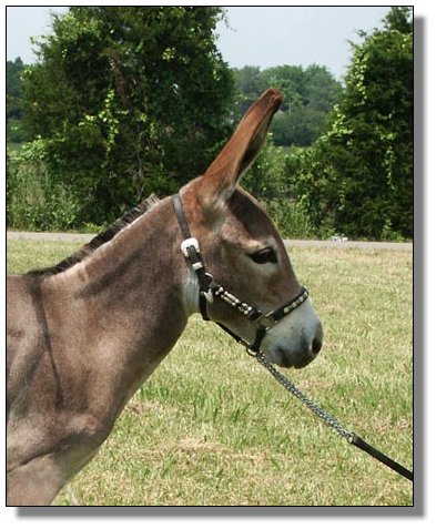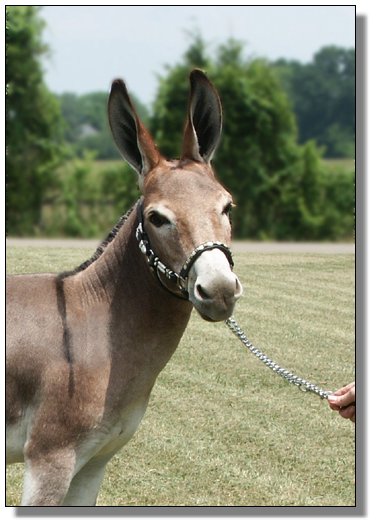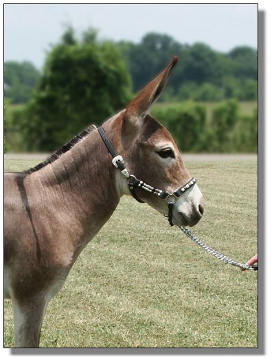 e in Yearlings at Halter out of 18 entries at the Great Celebration Mule & Donkey Show on July 7th, 2005Half Ass Acres She Bangs winning 3rd place in Yearlings at Halter out of 18 entries at the Great Celebration Mule & Donkey Show on July 7th, 2005