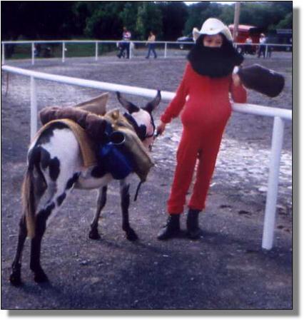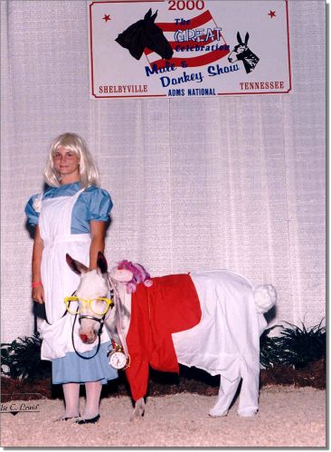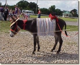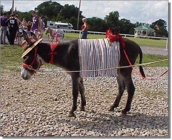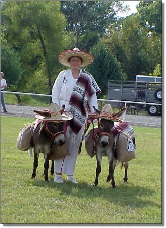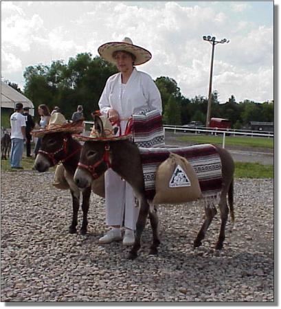 Rai wins 3rd place in Adult Costume July 1st, 2000 - First time shown! Shown by Butch Nowlin of Moe Moe Acres Miniature Donkeys. Photography by Billie C. Lewis, Chapel Hill, North Carolina |